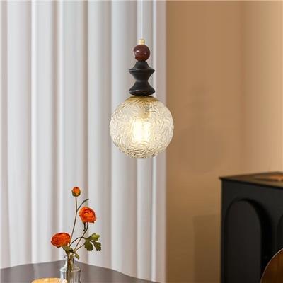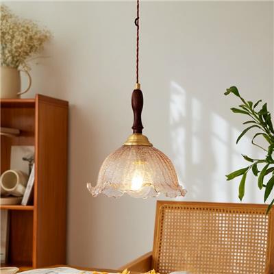 【FP1021 1022 1023】实木+铁艺+玻璃 法式复古黄铜裂纹玻璃中古风小吊灯