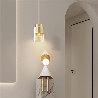 【81097】黄铜+玻璃+亚克力 全铜现代简约卧室床头餐厅吧台走廊过道小吊灯