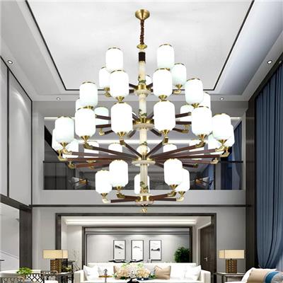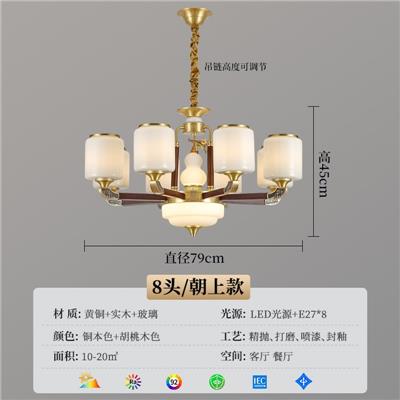 【6075】铜+胡桃木+玉石中柱+玻璃灯罩 吊灯