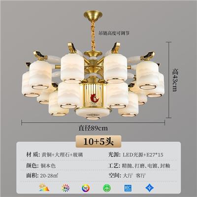 3265系列2025新款鱼跃龙门铜+大理石主卧餐厅高级感中国风吊灯