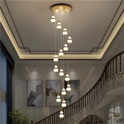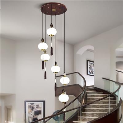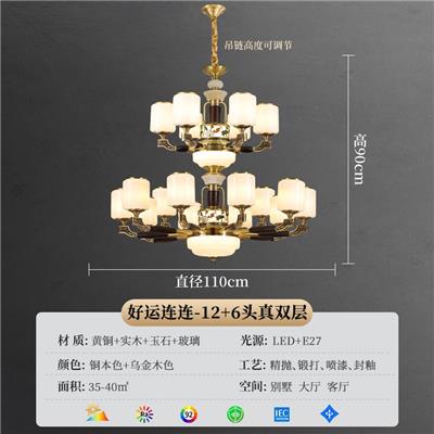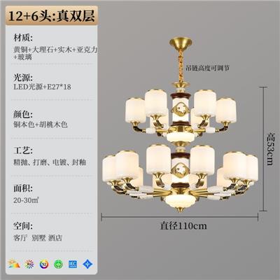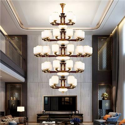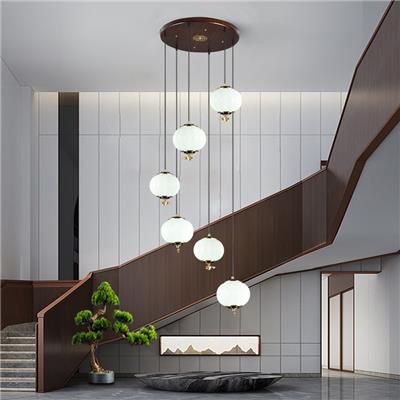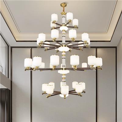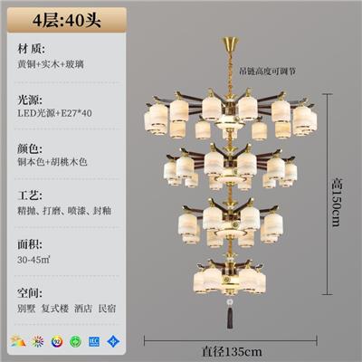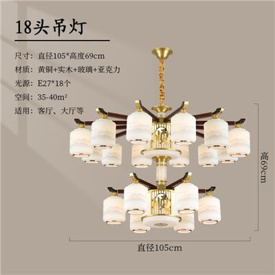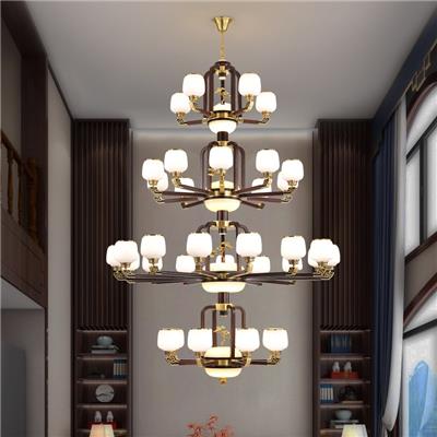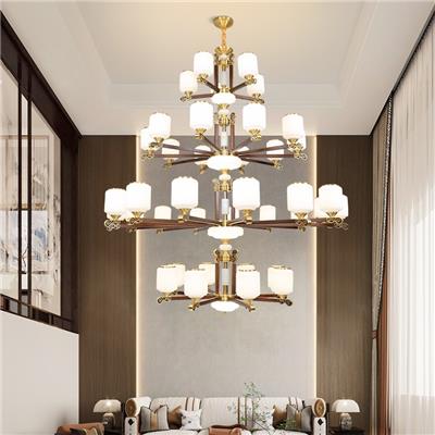 3273系列新中式客厅吊灯全铜实木中国风餐厅书房灯别墅复式楼大厅灯