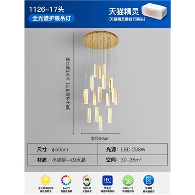 【MKQ-1121】不锈钢+水晶 现代轻奢客厅卧室餐厅别墅中空楼梯水晶吊灯