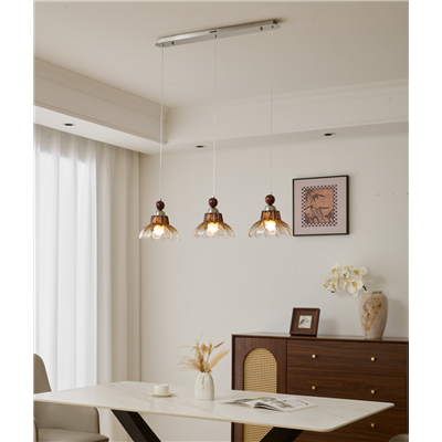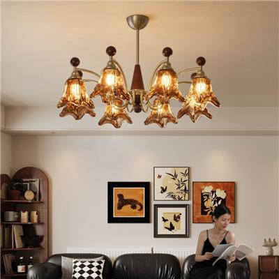 【HL-9190】五金+玻璃+白蜡木 设计师款美拉德复古中古风吊灯
