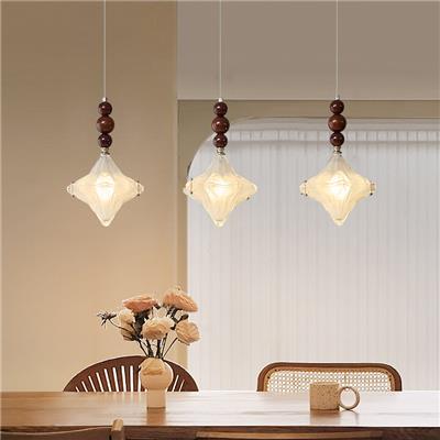 【HL-96052】铁艺+实木+玻璃 法式中古风餐厅吧台玻璃吊灯床头小吊灯