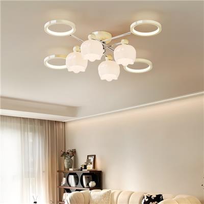 【YS-6255 】铁艺+PE灯罩 孟菲斯法式奶油卧室全光谱半吸顶吊灯