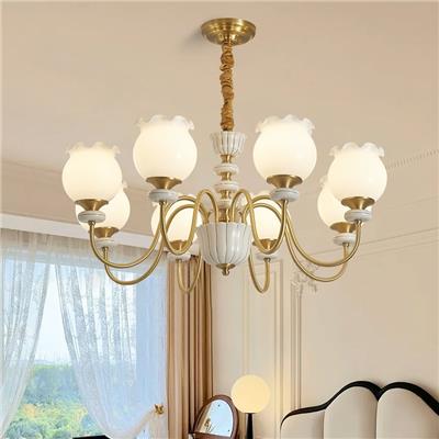 【QG3038 】H65铜+陶瓷+玻璃 复古法式田园风全铜吊灯