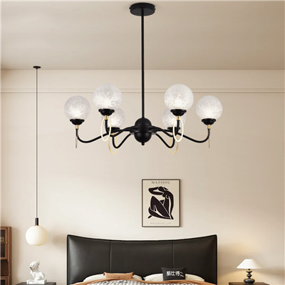 【YY8832 】铁艺+冰花玻璃灯罩 新款北欧包豪斯风客厅餐厅吊灯