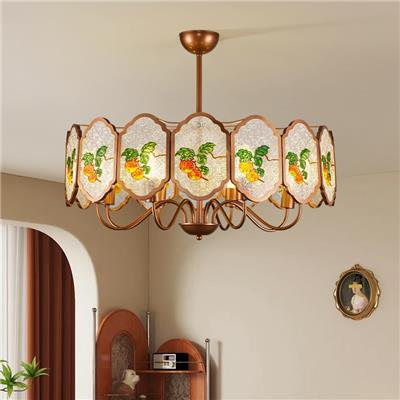 【8801柿子 】铁艺+亚克力 复古新中式高级感中古风珐琅彩吊灯