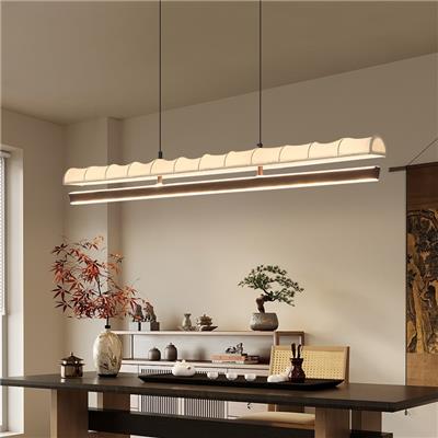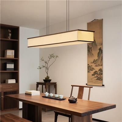 【HL-9168】铁艺+一级布艺 宋式美学简约一字长条餐厅吊灯复古布艺灯具