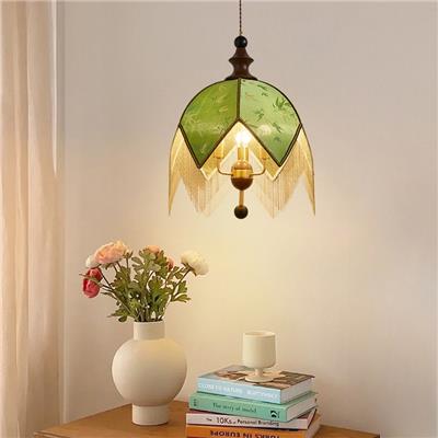 【FP1021 1022 1023】实木+铁艺+玻璃 法式复古黄铜裂纹玻璃中古风小吊灯