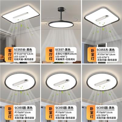 超薄极简现代吸顶全光谱数显+负离子无叶风扇灯SC055套餐
