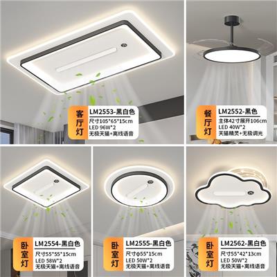 极简现代吸顶全光谱数显+负离子无叶风扇灯SC056套餐