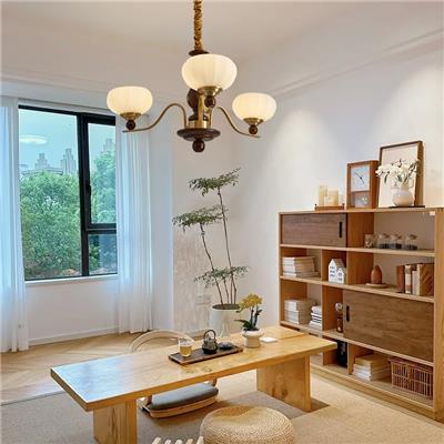 【D3006 】H65铜材+实木+玻璃灯罩 美式复古全铜中古风橡木胡桃木色客厅卧室吊灯