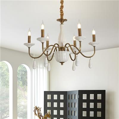 【QG3032 】H65铜+陶瓷+玻璃 法式全铜复古蜡烛客厅卧室吊灯