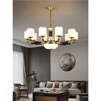 3262系列新中式吊灯客厅主灯铜+实木中国风新款别墅餐厅灯卧室灯具
