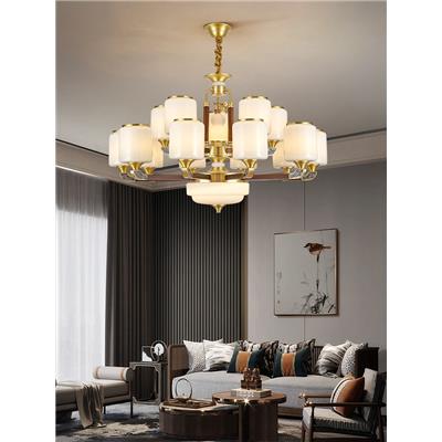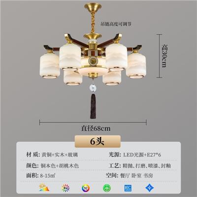 【6075】铜+胡桃木+玉石中柱+玻璃灯罩 吊灯