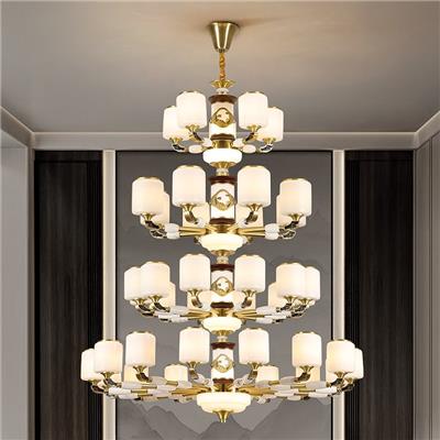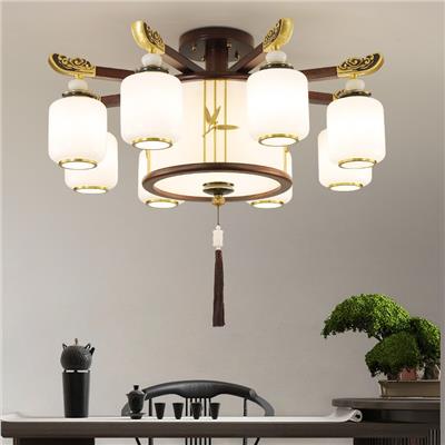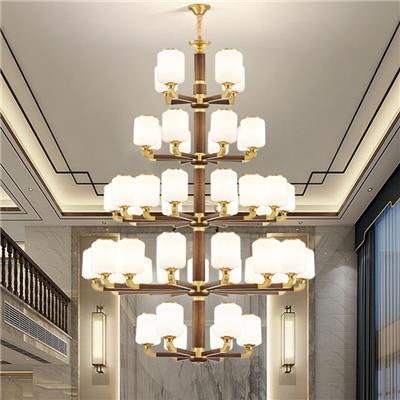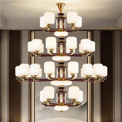 3273系列新中式客厅吊灯全铜实木中国风餐厅书房灯别墅复式楼大厅灯