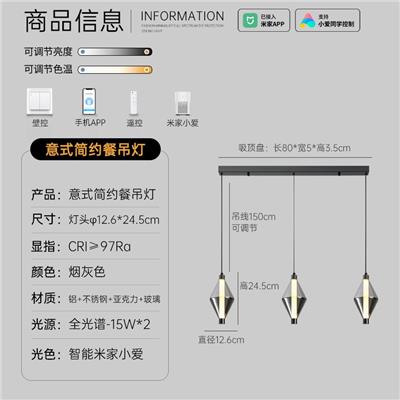 【HM-90152】五金+铝材+冰纹奶白全光谱亚克力拉丝餐厅吊灯