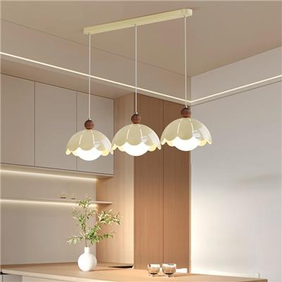 【YS-6174 】铁艺+玻璃灯罩 北欧现代奶油中古风餐厅吊灯