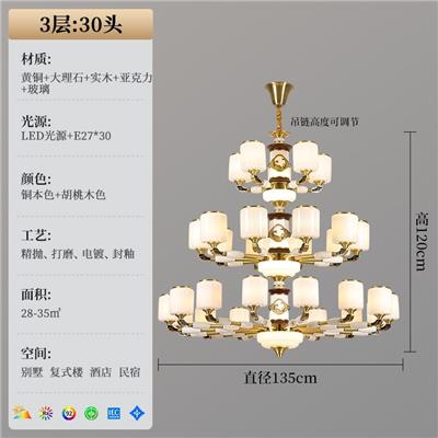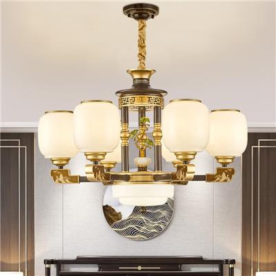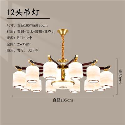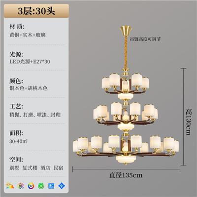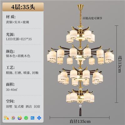 3273系列新中式客厅吊灯全铜实木中国风餐厅书房灯别墅复式楼大厅灯