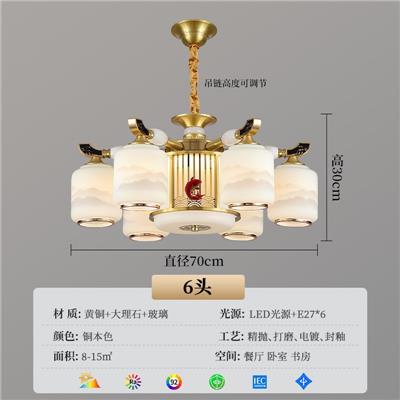3265系列2025新款鱼跃龙门铜+大理石主卧餐厅高级感中国风吊灯