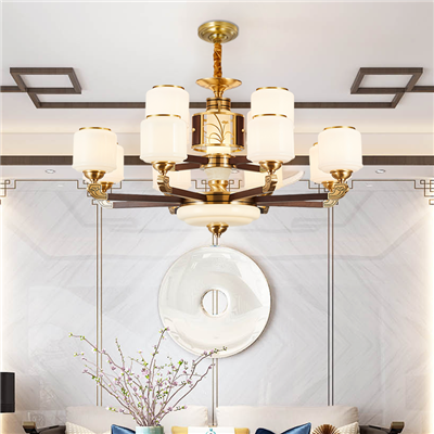 【6832】乌檀木+铜玻璃灯罩 吊灯